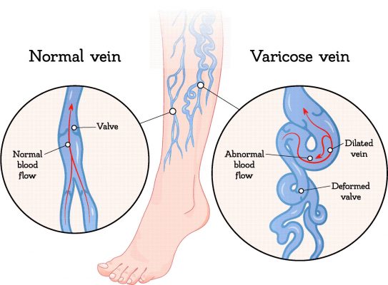Varicose veins are caused by faulty valves in leg veins that prevent blood from flowing back to the heart normally. Not only do varicose veins look bad on one’s legs, the patient’s legs also get tired and cramped easily, and in some cases there might also be darkened skin festering sore.